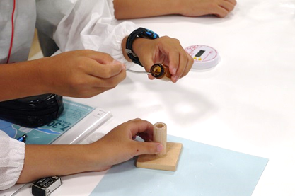 薬剤セミナーでは、「どうやって薬は効くのだろう?」「細かい薬の粉を飲みやすくするにはどうしたらいいのだろう?」「薬の形と溶けやすさの関係は?」などの疑問に、3つの実験と観察を繰り返しながら答えを探していきました。
