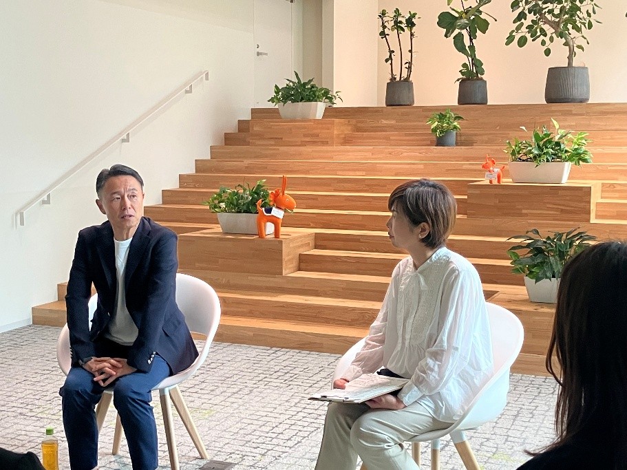 2025年8月、エーザイ本社に若年性認知症当事者様である藤島岳彦さんをお招きし、当社PR部社員との共同化を実施しました。