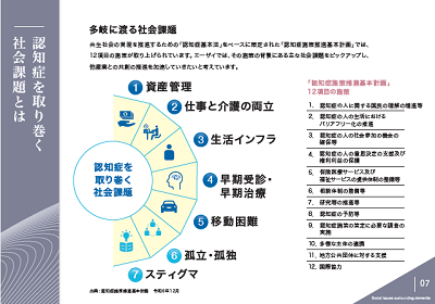 このたび、エーザイが発行した「認知症をとりまく社会課題白書2025年度版」は、認知症や軽度認知障害(MCI)の現状に加えて、認知症に関する多岐にわたる課題を7つの社会課題として整理し、それらを表すデータとともに、その解決に向けた方策を示したものです。