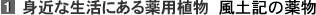 現在ある程度まとまったかたちで残るのは、「播磨国(はりまのくに)風土記」「常陸(ひたち)国風土記」「出雲(いずも)国風土記」「肥前(ひぜん)国風土記」「豊後(ぶんご)国風土記」の5つで、このほかには二十数カ国の逸文が諸書に引用されます。完全な形でみられるのは、天平5年(733)に提出された「出雲国風土記」のみです。かなりの薬草が古代の日本でも利用されていたことがわかります。