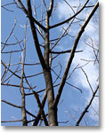 薬木園の樹木の葉はすっかり落ちて、枝がよく見える季節になりました。落ち葉でひときわ目立っていたのは、ホオノキの大きな葉でした。ホオノキはモクレン科の落葉高木で、初夏には直径15センチメートルもの盃形のクリーム色の花を咲かせます。葉は長さ20〜40センチメートル、樹木は大きなものでは高さ30メートルにもなります。生長が速く、しかもその材は緻密で軟らかく、また狂いやひび割れが少ないのです。そのため、版木や家具材、製図版、刀鞘、下駄の歯から、ピアノやオルガンの鍵盤までさまざまな用途に用いられてきました。