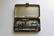第二次世界大戦のころ、経済封鎖による金属の不足は、銃弾の薬きょうをもリサイクルさせるほど日本軍をひっ迫させた※。写真の資料はそんな頃の医療器具である。