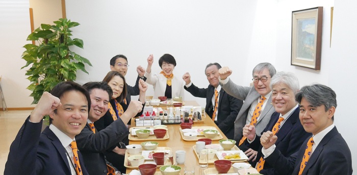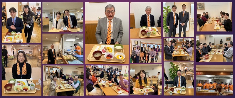 鹿島事業所では、オレンジ色に彩られた食堂で色鮮やかで美味しい料理を皆で味わいながら、NTDsに苦しむ人々への想いを共有しました。