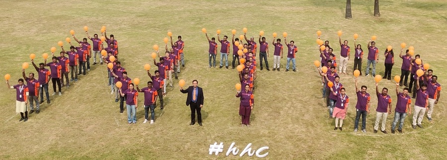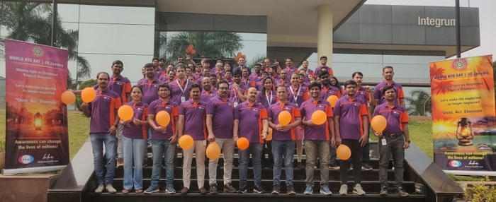 NTDsの一つであるリンパ系フィラリア症の治療薬を製造するインド・バイザッグ工場では、社員がオレンジ色の風船を持って「NTD」の人文字を形作り、hhc(ヒューマン・ヘルスケア)理念のもと、引き続きNTDs制圧に貢献していくというコミットメントを視覚的に表現し、One Teamスピリットを高めました。