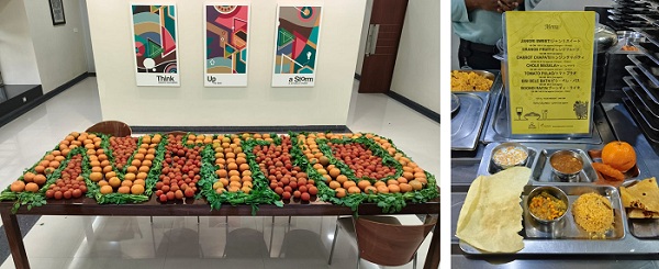 NTDsの制圧活動に取り組むエーザイでも毎年社員に向けた啓発活動を実施しています。今年も昨年に引き続き、東京本社、筑波研究所、鹿島事業所、川島工園、インド・バイザッグ工場の社員食堂で、社員がNTDsのシンボルカラーであるオレンジ色と紫色を取り入れた服装や小物を身に着け、シンボルカラーのランチメニューを楽しみました。